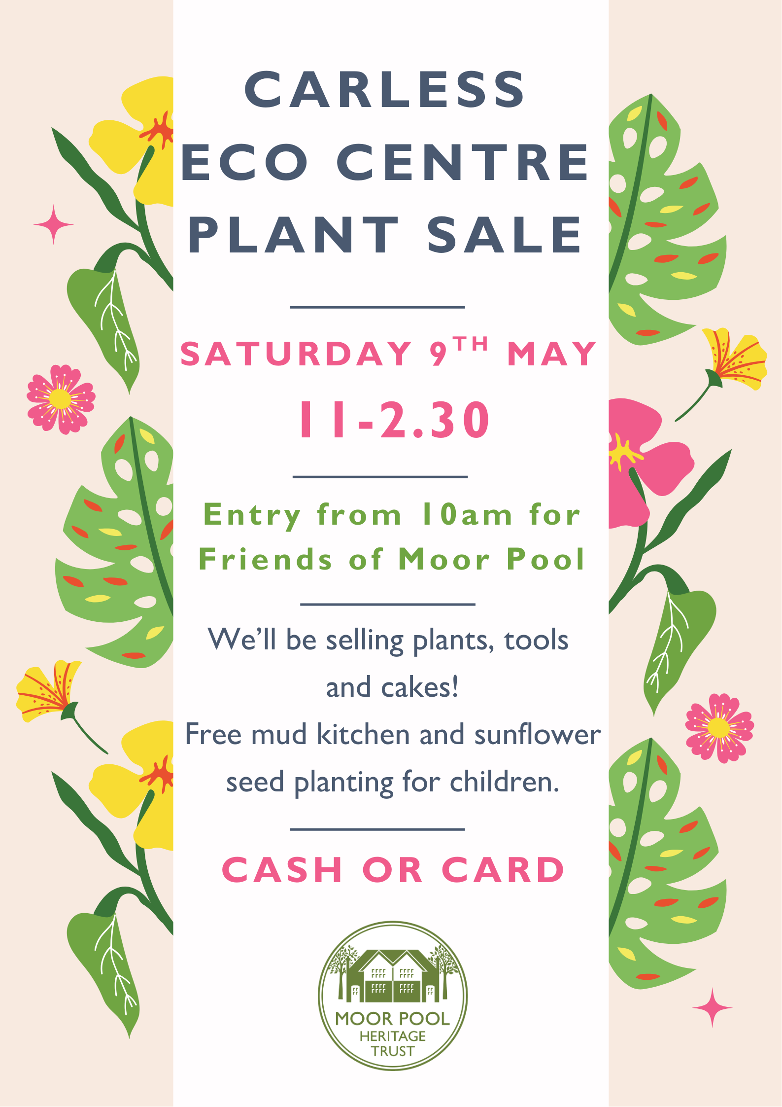 Early access from 10am for Friends of Moor Pool. We’ll be selling plants, cakes, drinks and tools. There will also be a free mud kitchen and sunflower seed planting for the kids. Cash and card payments accepted. All profits going back into conserving Moor Pool Estate.